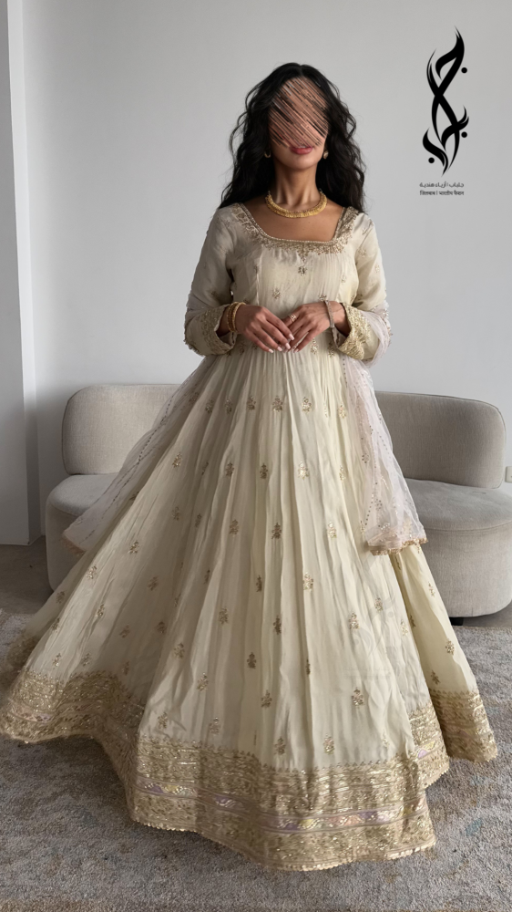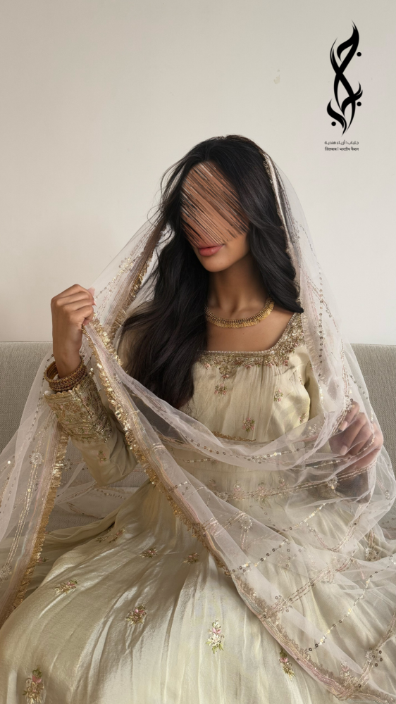 تألقي بإطلالة ملكية لا تُنسى مع جلابية هندية كريمي من متجر جلباب، المصممة خصيصًا للجلوات وحفلات الحناء الفاخرة. هذه الجلابية الساحرة مصنوعة من قماش فاخر ومليئة بتفاصيل غنية من الشك والتطريز الذهبي اليدوي، مما يمنحك حضورًا مبهرًا ومميزًا.